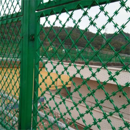 監(jiān)獄焊接刀片刺網(wǎng)網(wǎng)片菱形狀刺網(wǎng),刀刺網(wǎng)生產(chǎn)工藝:刀片刺網(wǎng)由銳利尖角鍍鋅鋼板或不銹鋼薄板做刀片,鋼絲做芯線組合而成的新型防護(hù)產(chǎn)品。鋼網(wǎng)墻表面處理;先鍍鋅,在PVC浸塑,顏色自選,亮麗大…