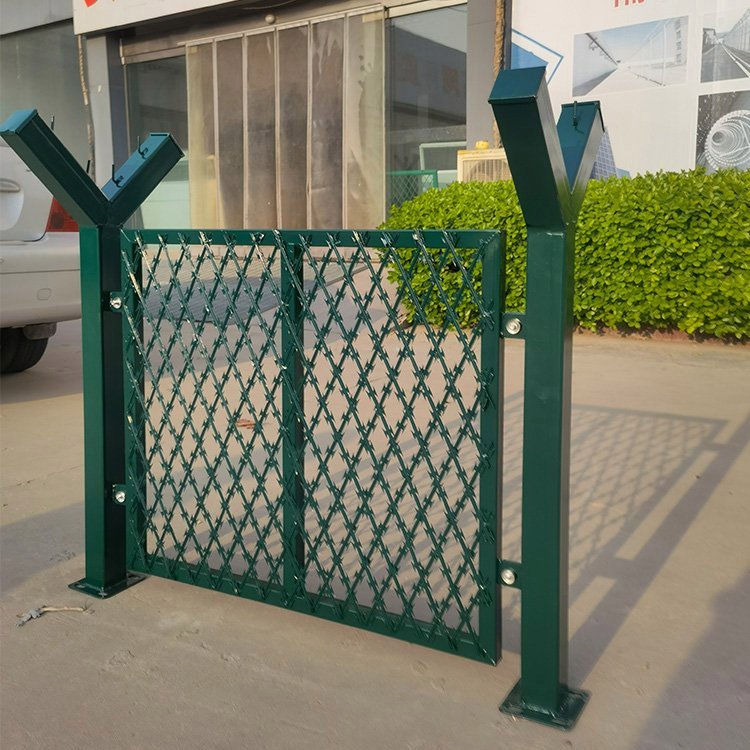 看守所監區內鋼網墻在生產形勢及產品原材料的不同上邊有兩種類型,鋼絲網片型與焊接刀片刺繩網片型。這兩種只是網片上邊的材料不同,立柱邊框都是可以通用的。