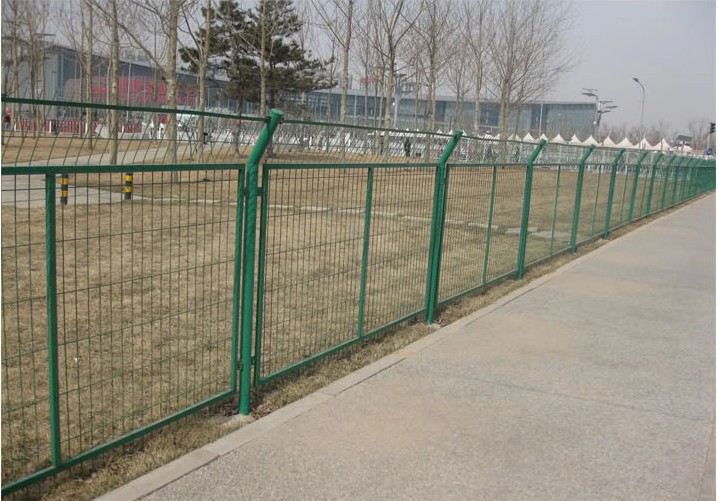 立柱及網片上均設焊耳,立柱與網片及斜撐采用防盜螺栓連接。立柱、網片、 斜撐及焊耳均浸塑防腐,塑層厚度0.4~ 0.6mm。螺栓表面熱浸鍍鋅。