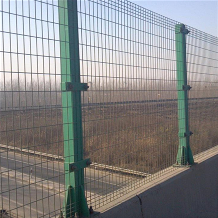立交橋防拋網(又名橋梁防護網、橋梁護欄網)是由低碳鋼絲經過拉拔、編織、焊接、浸塑等一系列工藝加工而成,普遍用于市政高架橋,高速公路立交橋,鐵路立交橋,過街天橋,港口碼頭,畜牧,養植等的護欄防護。