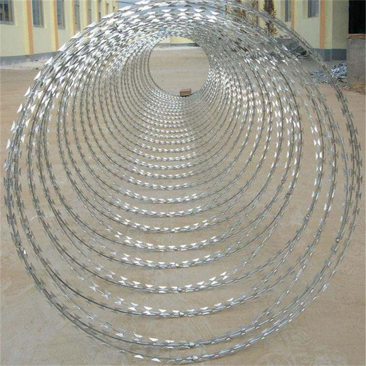 刀刺網(wǎng)是近年來新型的安全系數(shù)更高的監(jiān)獄隔離網(wǎng),其網(wǎng)片上由銳利尖角鍍鋅鋼板或不銹鋼薄板做刀片,高張力鋼絲做芯線組合焊接而成的。鋒利的刀型刺既美觀又讓人不寒而栗。起到了很好的阻嚇作 用可以有效的防止攀爬。主要用于監(jiān)獄外隔離網(wǎng)、監(jiān)獄內(nèi)隔離網(wǎng)、監(jiān)墻上隔離網(wǎng)、巡邏通道隔離網(wǎng)、車行通道、監(jiān)獄鋼網(wǎng)墻等等。安裝后整體牢固、威嚴(yán)肅穆,可起到超強(qiáng)的震懾力!