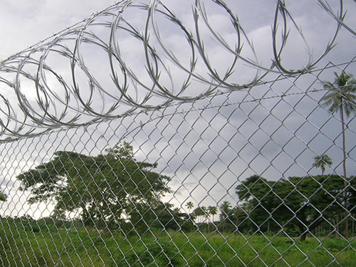 2012年*新《鐵路線路防護柵欄》[通線(2012)8001]通用參考圖出爐! 文獻規定:鐵路柵欄一改往日焊接鋼絲網柵欄、刺絲網柵欄等產品,改為防御性更強、壽命更長久的:鋼筋混凝土柵欄+0.5米高刺絲滾籠的防護柵欄。詳細內容如下: 鋼筋混凝土柵欄:詳見圖紙 0.5米高刺絲滾籠組成:刺絲刺繩+刀刺滾籠+鋼絲+立柱 圖集中:5、刺絲滾籠:(1)刺絲滾籠采用刀片刺繩繞圈后相鄰兩圈每隔120度用刺絲連接卡固定,張開后形成蛇腹網狀,閉合后刀片刺繩卷徑為50cm,張開后每交叉圈安裝間距20cm,直徑不小于45cm。(2)刀片刺繩由沖切鋼板采用機械軋在鋼絲上成型,刀刺寬度22mm,刀刃垂直間距15mm,刀刺縱向間距34mm,芯絲直徑為2.5mm。刀片厚度0.5mm的Q195鋼板網沖切制作。芯絲由HPB300 -6.5mm高線鋼絲冷拔加工。