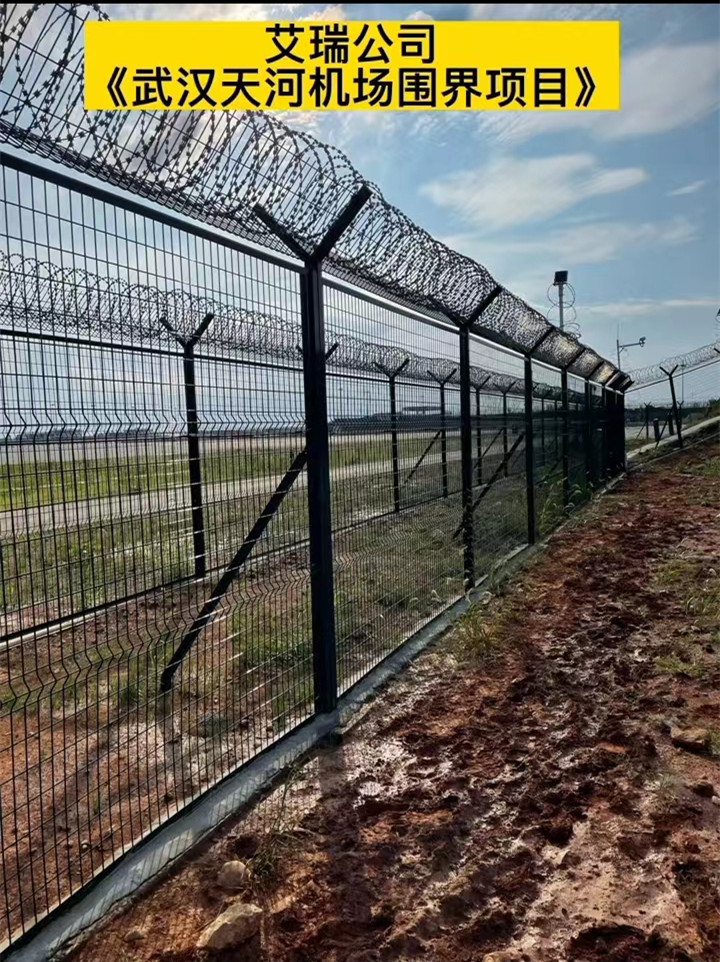 機場圍界又稱作“機場護欄”、"Y型安全防御護網”, 它是由V型支架立拄 ,加強型焊接片網,安全防盜連接件和熱鍍鋅