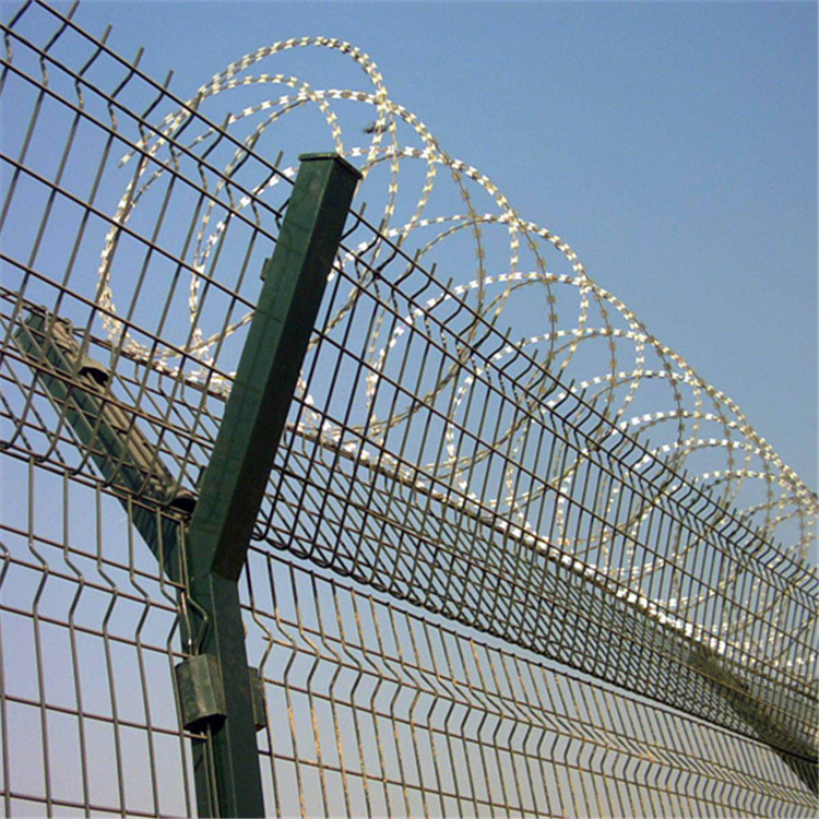 監(jiān)獄護(hù)欄網(wǎng)又名監(jiān)獄鋼網(wǎng)墻、鋼網(wǎng)墻監(jiān)獄防護(hù)網(wǎng);主要由蛇腹式高強(qiáng)度刀片刺網(wǎng),又名刀片刺繩,Y型方(圓)管高碳鋼絲焊接網(wǎng)片,v型鋼絲焊接網(wǎng)與安全防盜銜接件組合而成,是由高碳鋼絲編制焊接而成,高度上下兩頭折彎以添加網(wǎng)片強(qiáng)度,網(wǎng)片平坦、網(wǎng)孔均勻、焊接結(jié)實(shí)、無(wú)虛焊無(wú)漏焊表象,具有防攀爬,抗沖擊,高安全防護(hù)特性特性,有用避免人員,牲畜進(jìn)入。