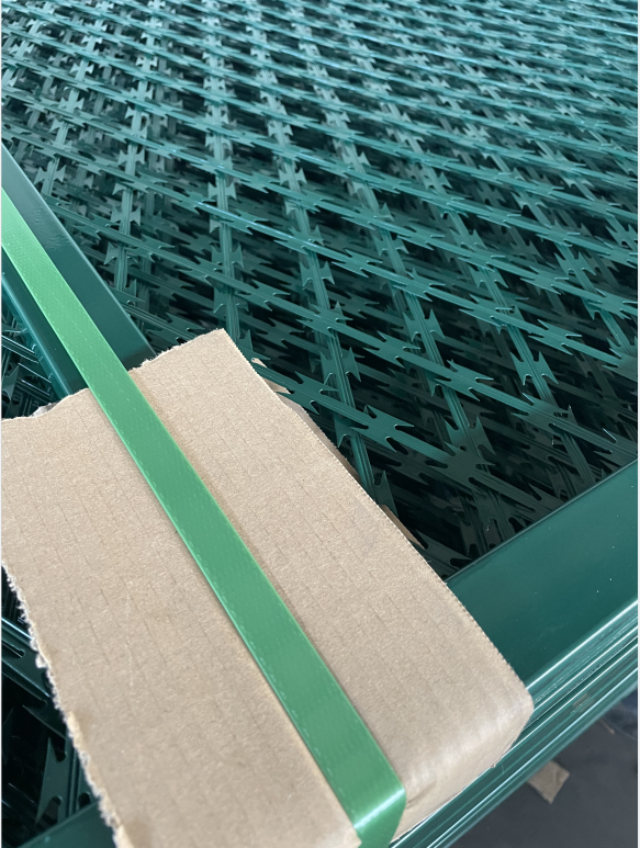 焊接型刀片刺網,是把刀片刺絲焊接成菱形孔或者方形孔的刀片刺網,如果想攀爬翻越,網狀的刀片刺網刀片鋒利,環能握,腳不能攀登,堅決阻止人逾越的防護墻,具有很強的恐嚇和阻止效果,既美觀又實際效果顯著.深受監獄、軍隊、政府設施的喜好。